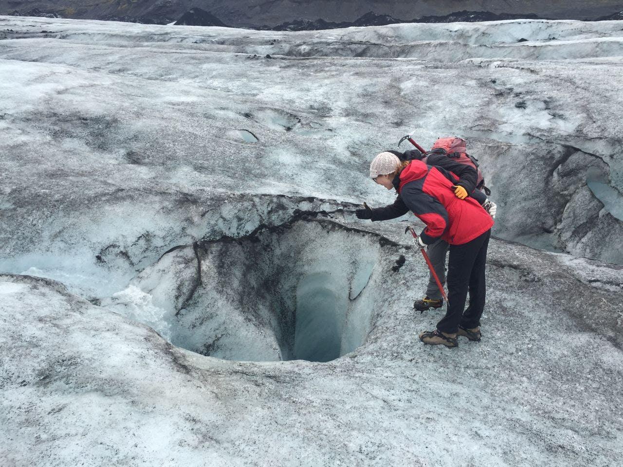 Seeing a moulin, a hole worn in the ice by water, was great. Our guide Magnús told us a funny story about a man and his sheep that fell down a moulin and showed up 40 days later.