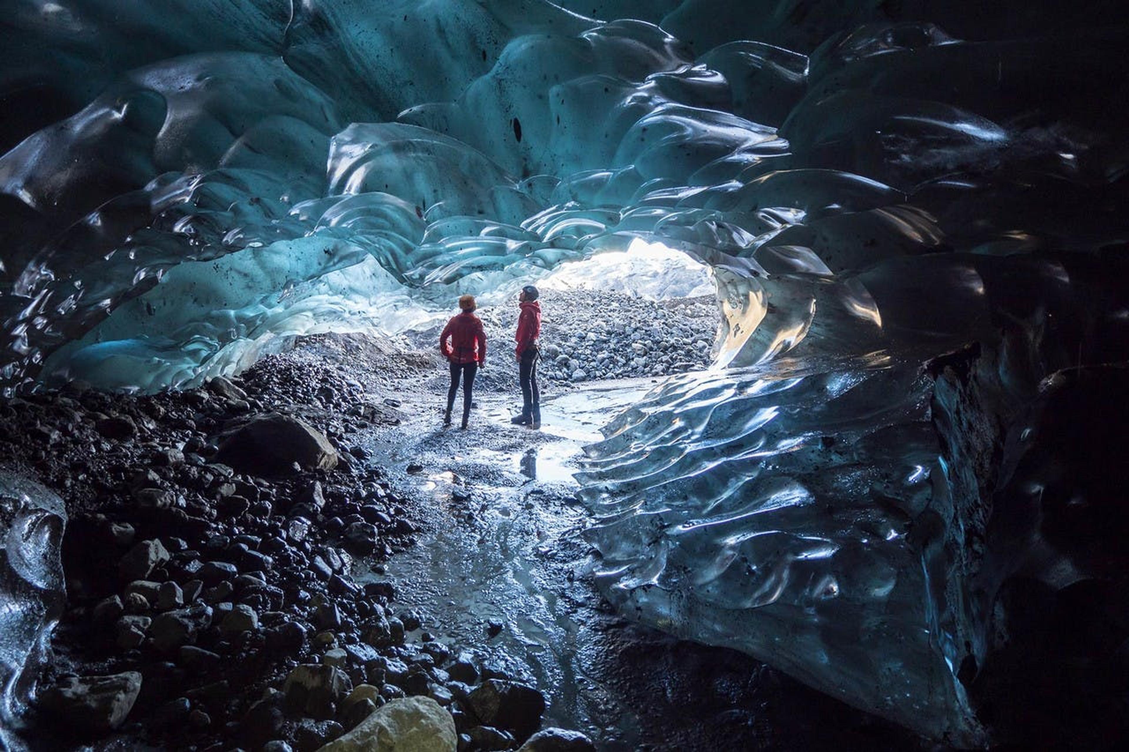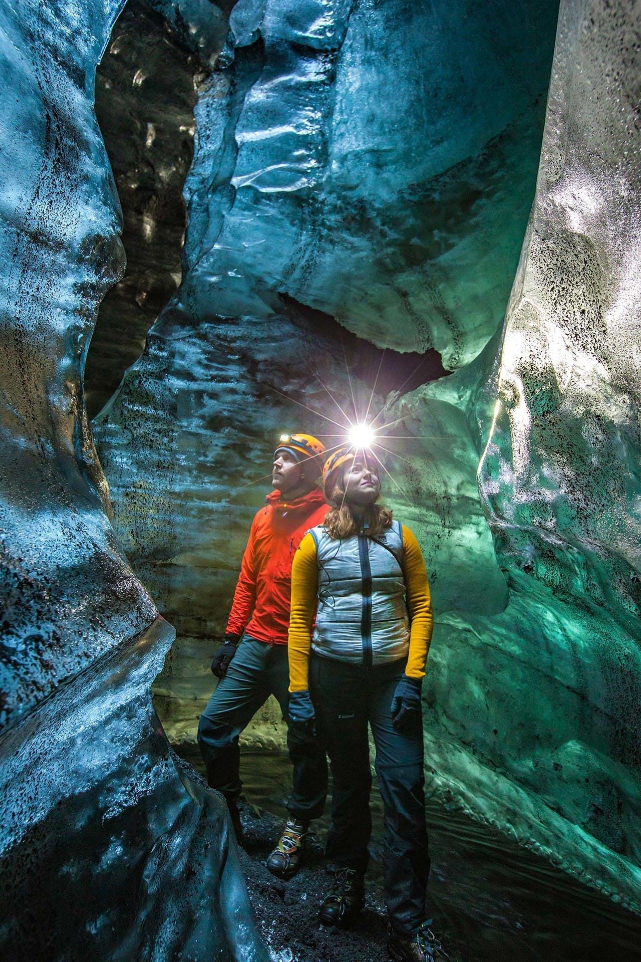 You should start your exploration by visiting Vatnajökull National Park, where you can spend hours driving through the unique, glacial scenery before you reach the caves. Some people enjoy hiking over the tops of the glacier to find steely, stretching views, before delving underground to start their glacier walk and ice cave exploration.