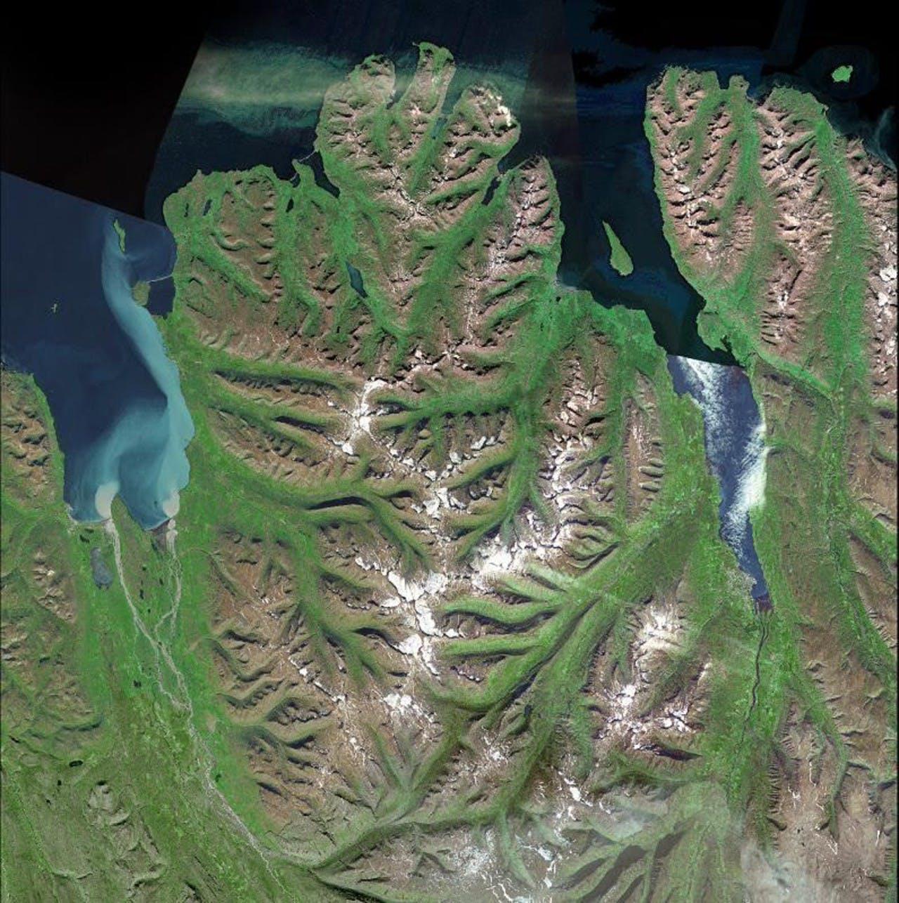 The area is punctuated with deep valleys left behind by long-gone glaciers; the area is now cut by rivers at the bottoms of the glacial valleys, taking over 10,000 years to form. It covers an area of 150 km² and holds 150 small glaciers.