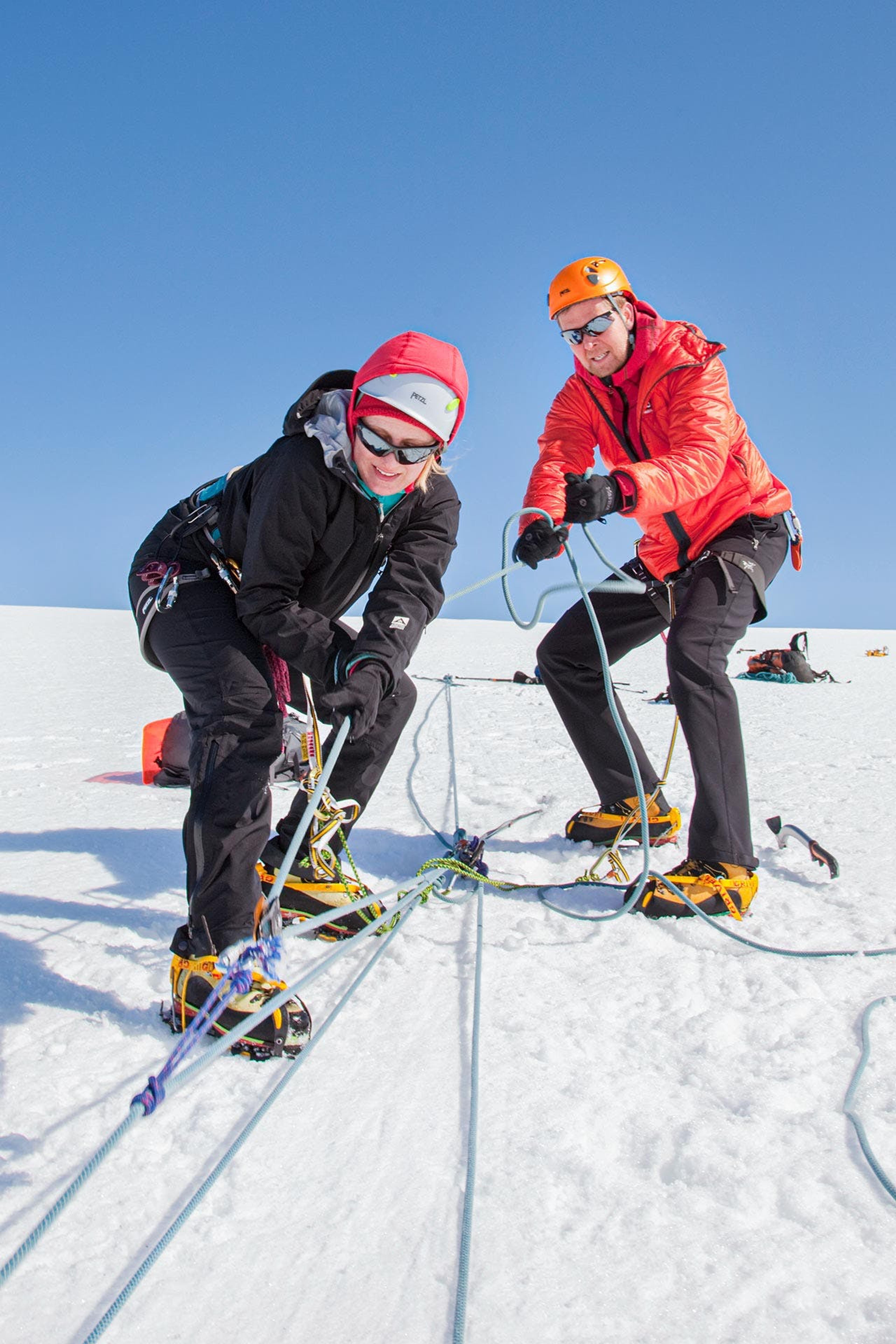 Short into to roped glacier travel and the use of a mechanical advantage for crevasse rescue.