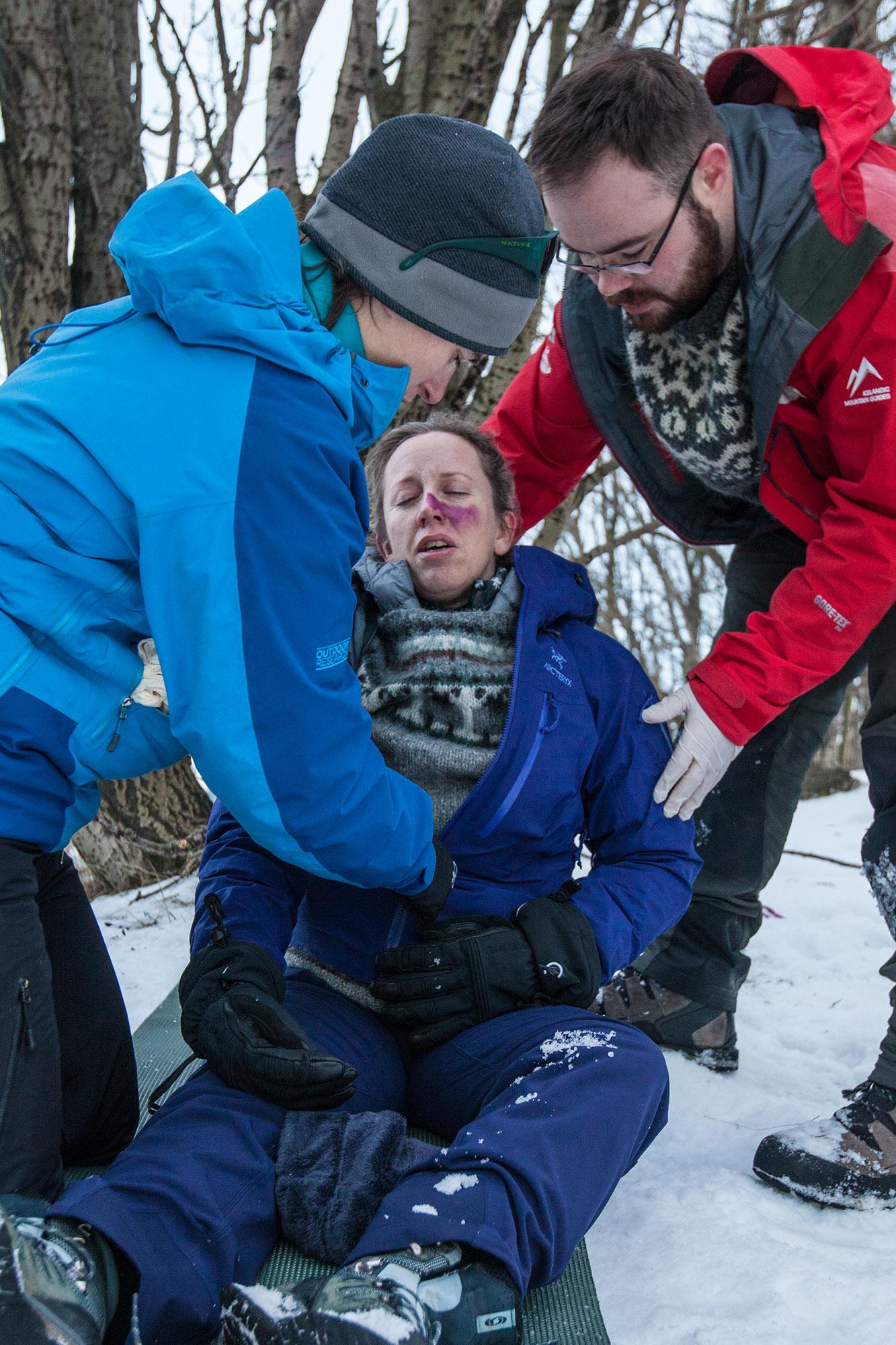 I just completed the ten-day WildernessFirstResponder course organized by Icelandic Mountain Guides last week and I could not have been any happier. Organization and information by Ívar beforehand was great. There were 31 people in our class and two stellar NOLS instructors flew in from the US to teach us. We had a transfer service for the international students. Classes and outdoor scenarios were held at Hjálparsveit skáta í Reykjavík (SAR) where we could use the kitchen facilities and some of the equipment. There were plenty of cookies and snacks to see us through ten days of studying and practicing. It was intense, challenging and so much fun. We learned how to assess the scene and our patient, to make decisions on spine protection and evacuation and how to treat a variety of injuries and illnesses. Our instructors were knowledgeable and always patient and ready to help. We did some solo scenarios, many team scenarios and some larger group scenarios, one of them at night, to let us practice our new skills. On the last day we had a 100 question written test and a practical test assessing one of our instructors. Everyone passed. I enjoyed the course so much that I am now thinking about taking the Wilderness EMT next. Thank you, IMG for organizing this course. It was amazing!