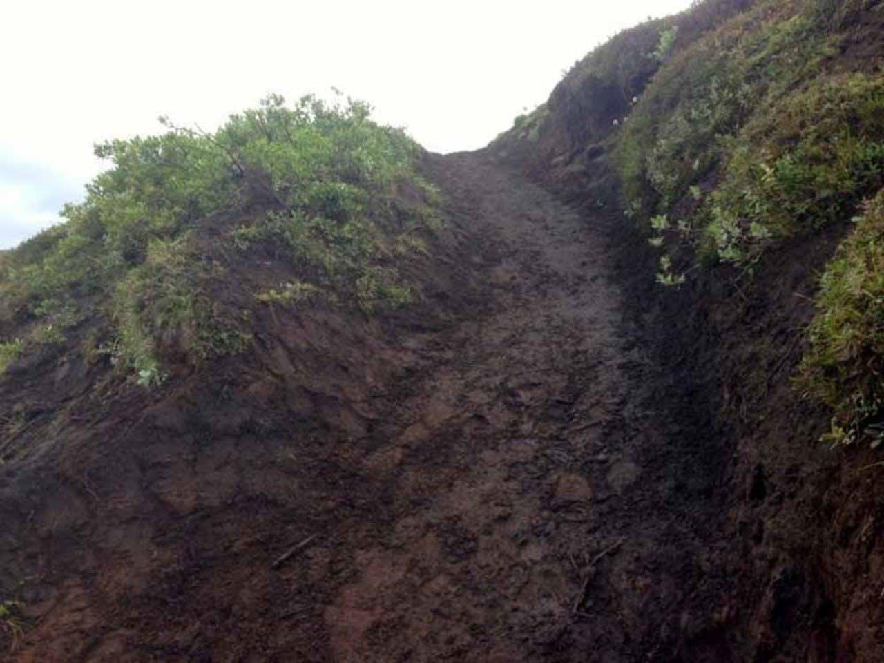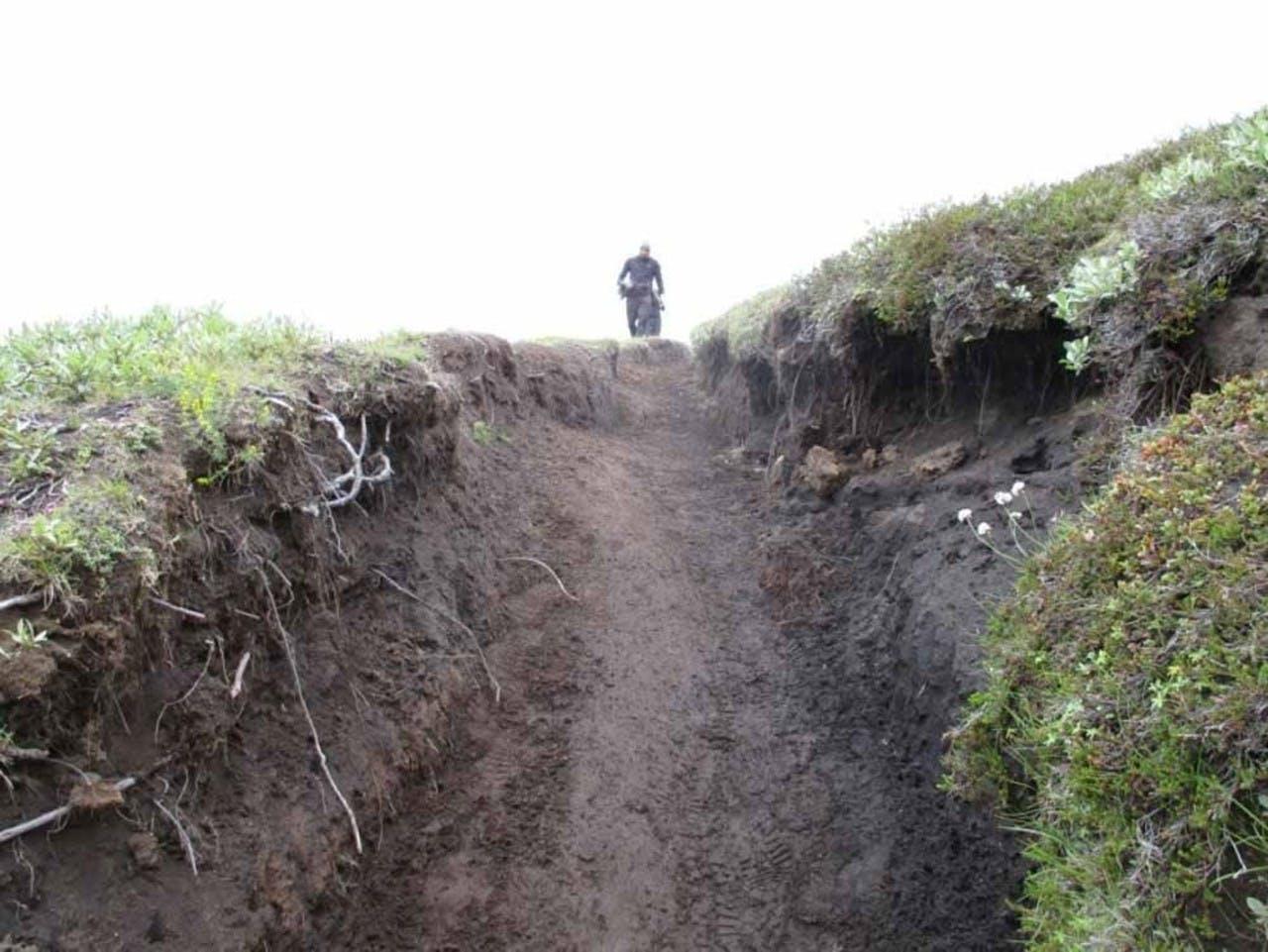 Trail that needs a rest, grass has been planted to prevent soil erosion