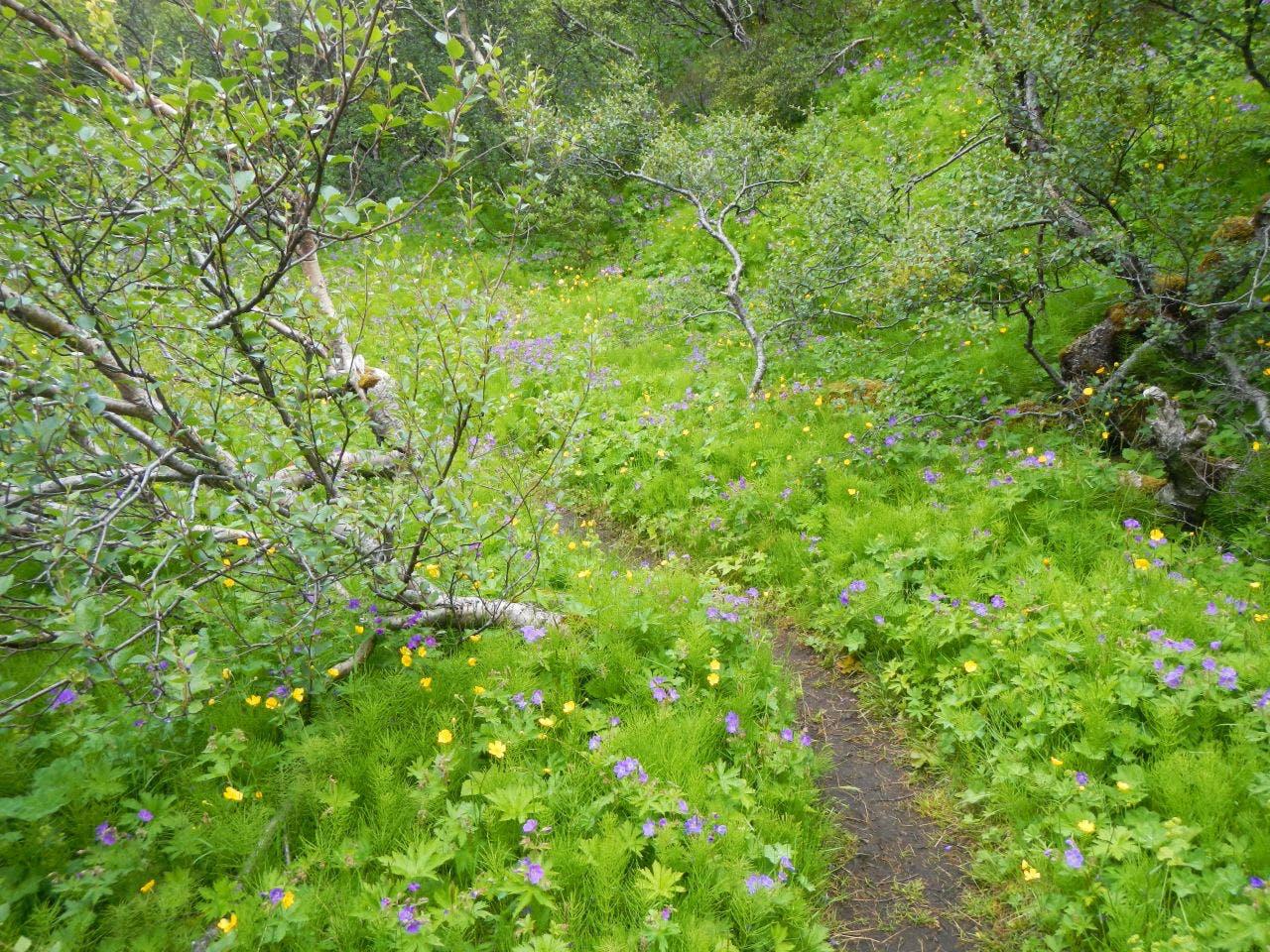 Although, I knew Iceland well from my earlier visits, what was so wonderful in hiking the Laugavegur was the transition from the hot springs and fumaroles between Landmannalaugar and the rim of the caldera. It was amazing to traverse the snow-covered plateau, then slowly descend over black sand plains to the spectacular Markjaflot canyon, with the ice caps of the Mýrdalsjokull commanding the horizon. As we finally hiked among the ever deeper green slopes and approached the birch forests of Þórsmork, to my delight I found three different species of orchids.