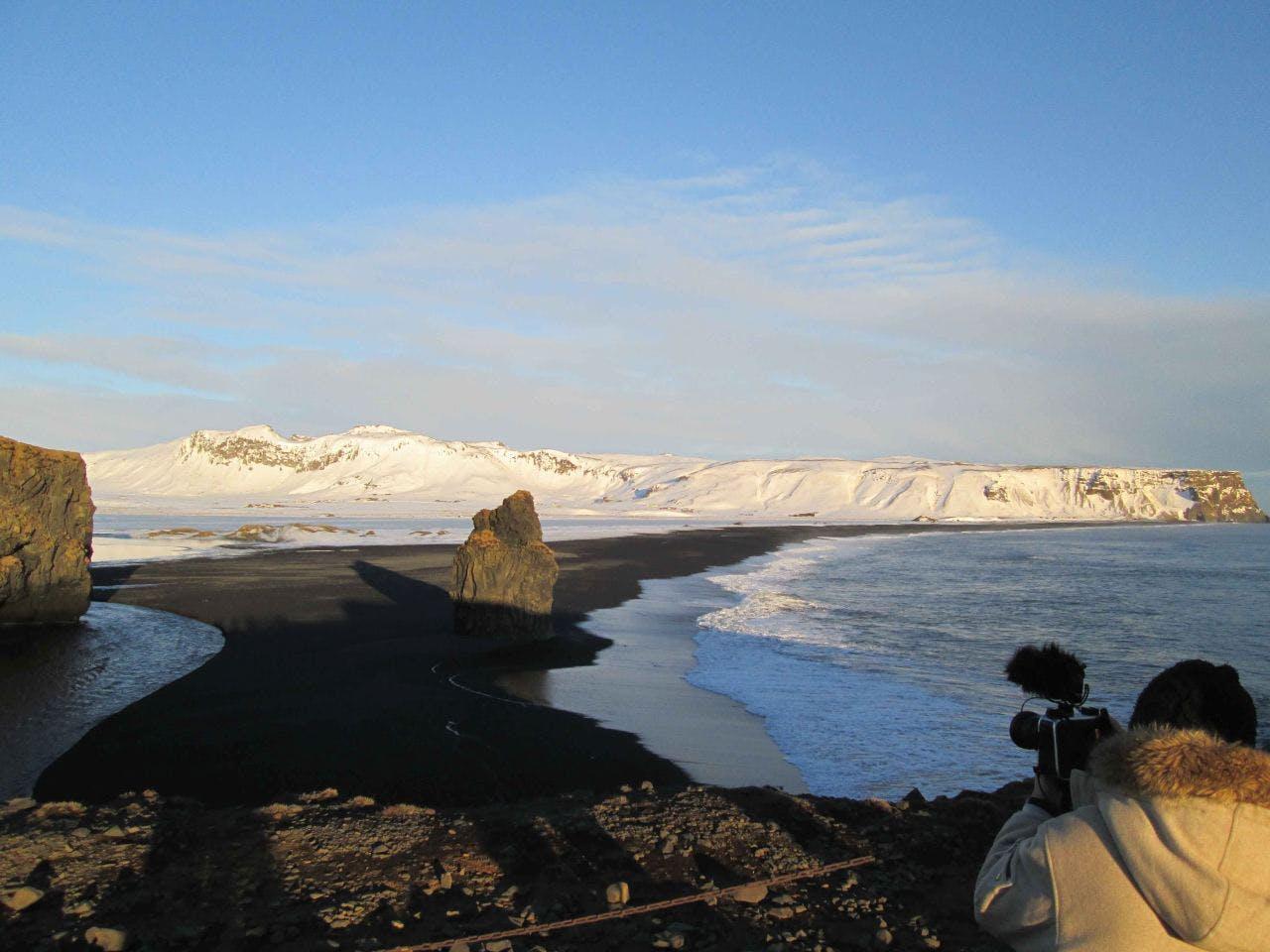 We started by the Thingvellir National Park and went down to Vik. It is amazing to see the landscape unfolding in front of the car, from Seljalandsfoss to Dyrhólaey. Then we pushed to Jökulsárlón but couldn’t go further because of the threatening weather. On our way back, we stopped and took a walk on Svínafellsjökull. This is one of my best memories. Tryggvi our guide was very good at keeping the group climbing effortless with his good sense of humor. Here we are, standing at the top of the glacier around 4 pm as the sun was going down already, this appears in the last part of the film by the way.