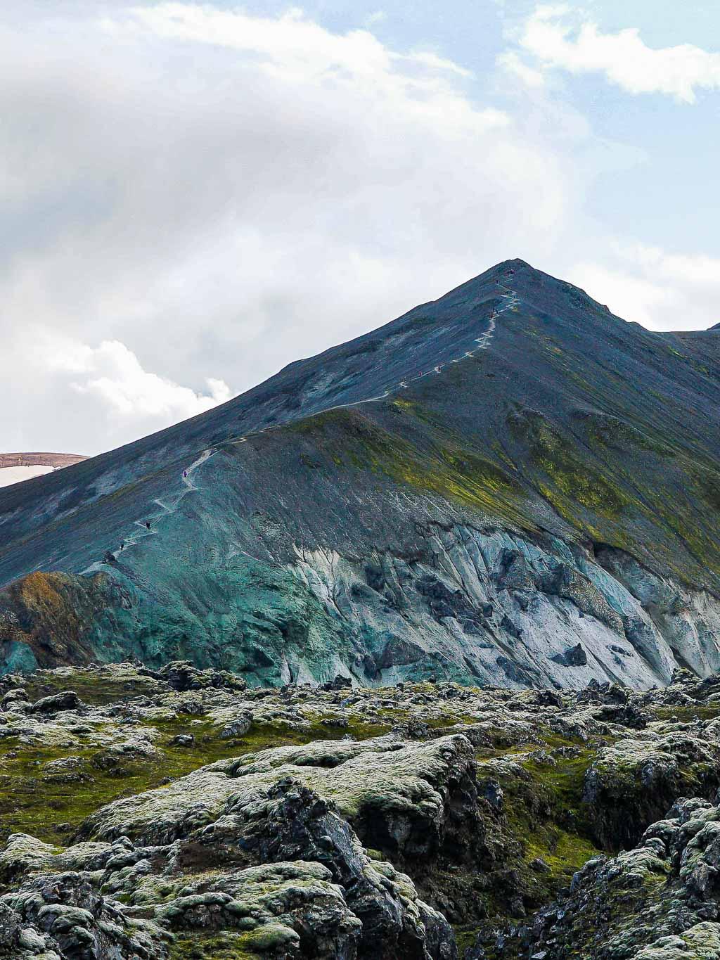 Vegetation in Fjallabak is sparse, flourishing mainly along the rivers and lakes in the form of moss and lichen, which dot the otherwise barren volcanic terrain.
