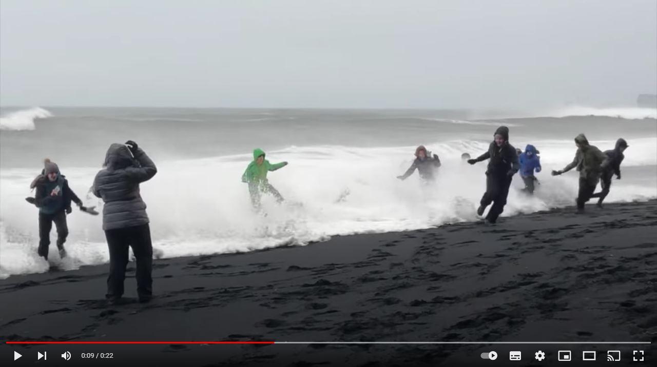 Scary video of the sneaker wave. Watch it on youtube: https://youtu.be/qmUP6l1I2Z4