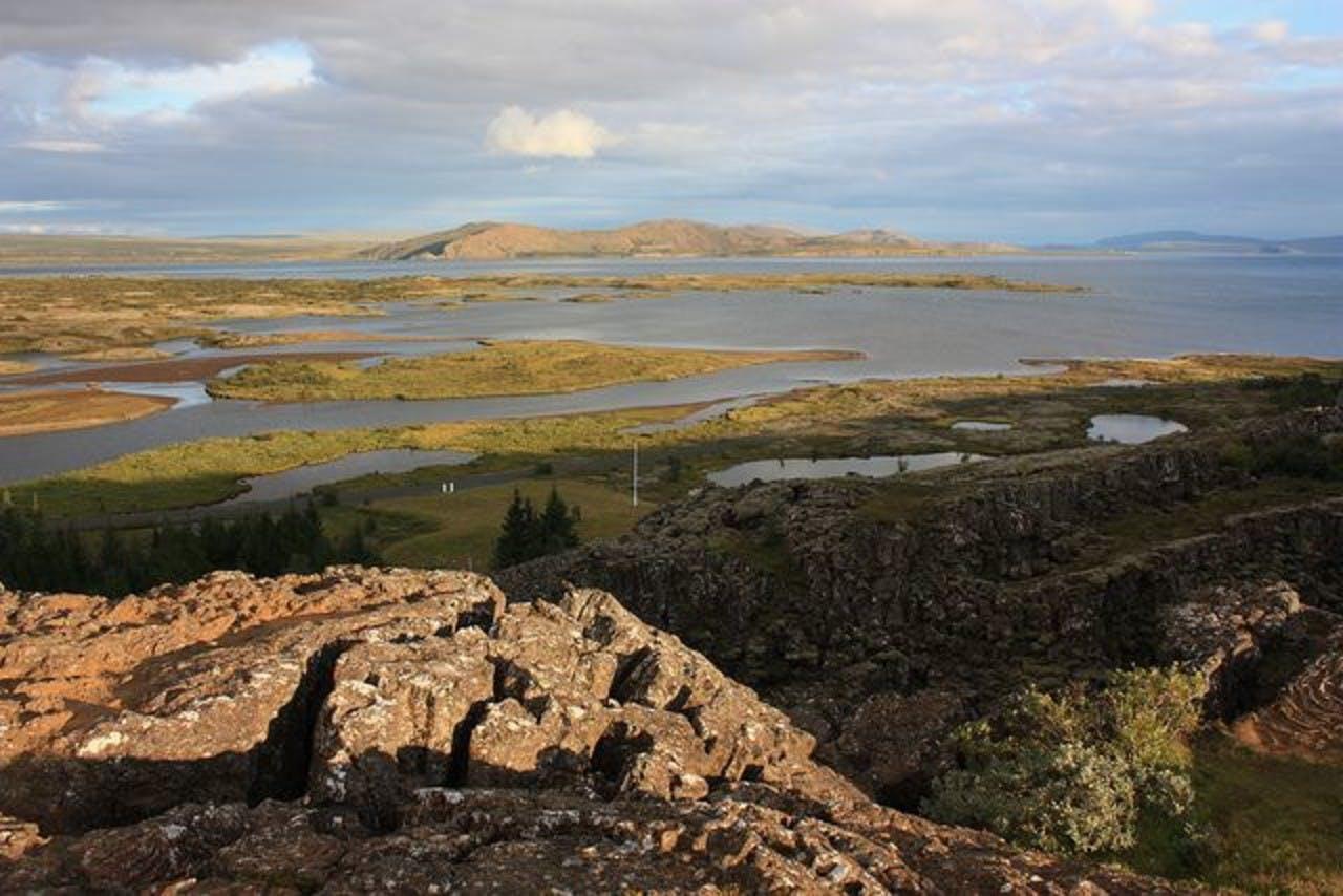 Just forty minutes northeast of Reykjavik, along Route 36, Þingvellir National Park provides the best opportunity to walk the seam of the Mid-Atlantic Ridge, with one foot on the North American tectonic plate, and the other on the Eurasian tectonic plate. Jagged volcanic mountains — the sleeping giants of Iceland — surround the park. Mt Skjaldbreiður, a magnificent shield volcano, dominates the horizon to the north of Þingvellir. Þingvallavatn Lake, Iceland’s largest inland body of water, borders the south rim of the park.