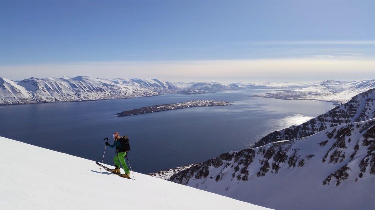 As a local to Iceland and a keen outdoor enthusiast, I have plenty of favorite places, always changing with the seasons. Writing this in winter, with short days and stormy weather, long days and multi-day trips are not quite on the table, but come late February, with the ski season slowly starting, my Eldorado would be the Troll peninsula, or Tröllaskagi in Icelandic. This is located in the north of Iceland, with the little fishing town of Dalvík as a central hub. My ski game is ski-touring where I would walk up on skis, convert my skis and boots at the summit to down hill mode, and ski the untracked powder, often all the way down to the Atlantic Ocean.