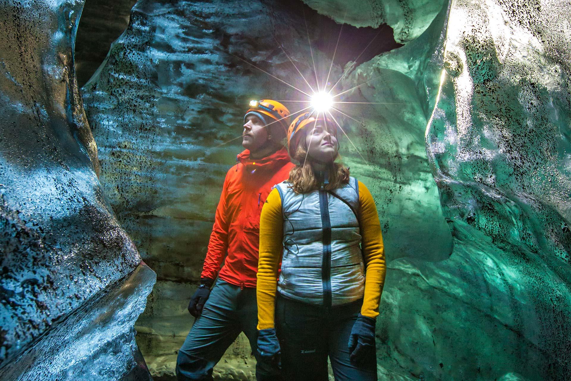 As the glaciers in Iceland melt, they sometimes reveal stunning ice caves and tunnels that are safe for adventurers to explore. We offer tours both from Vík or Reykjavík to the Secret ice cave in Mýrdalsjökull and glacier hike combo tours in Skaftafell and at Sólheimajökull glacier, when access is available. Let our highly trained glacier guides show you some of the most spectacular natural ice caves in Iceland.