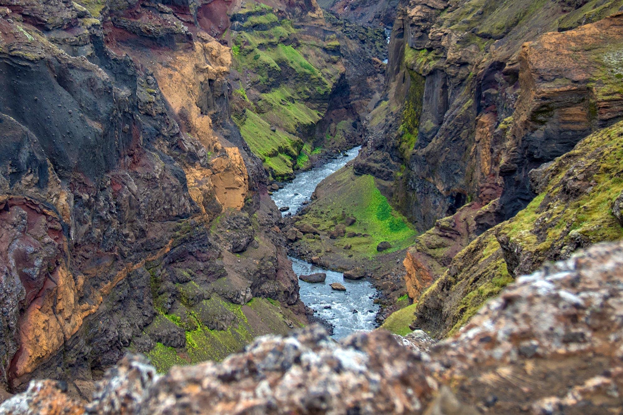 We pass at the foot of the green conic volcano of Stórasúla before entering the black deserts of Mælifellssandur. Heading towards another ancient and verdurous volcano, the Hattfell, we enter the Emstrur region where farmers used to graze their sheep in summer. Before arriving at the Botnar hut where we stay the night, we visit the magnificent Markarfljót canyon cut almost 200 m down into the rocks south of Hattfell.