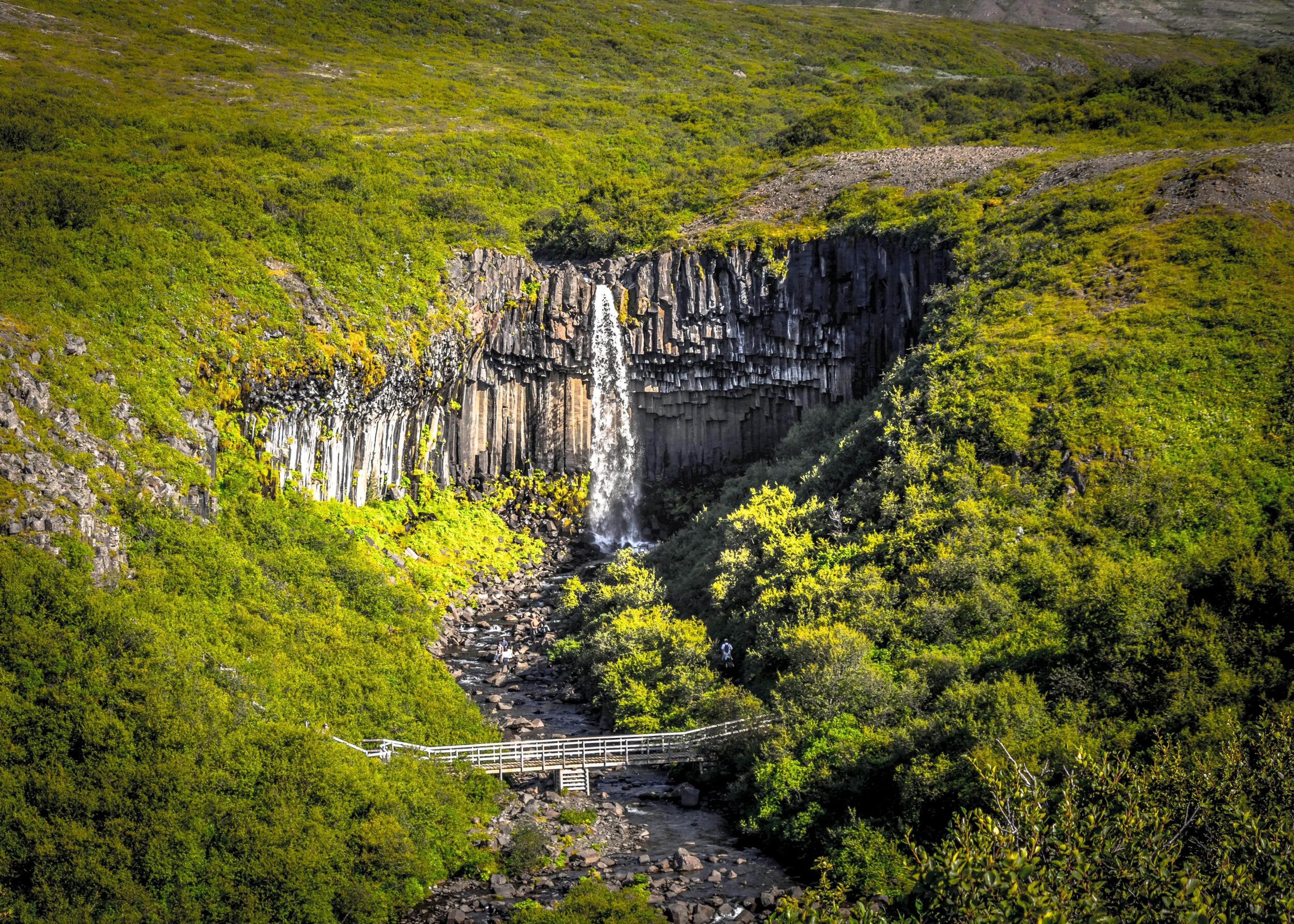 The route begins near the national park visitor centre and leads through diverse terrain, including small birch forests, open highlands, and rocky ridges. Along the way, you’ll stop at the striking Svartifoss waterfall, known for its unique basalt columns.