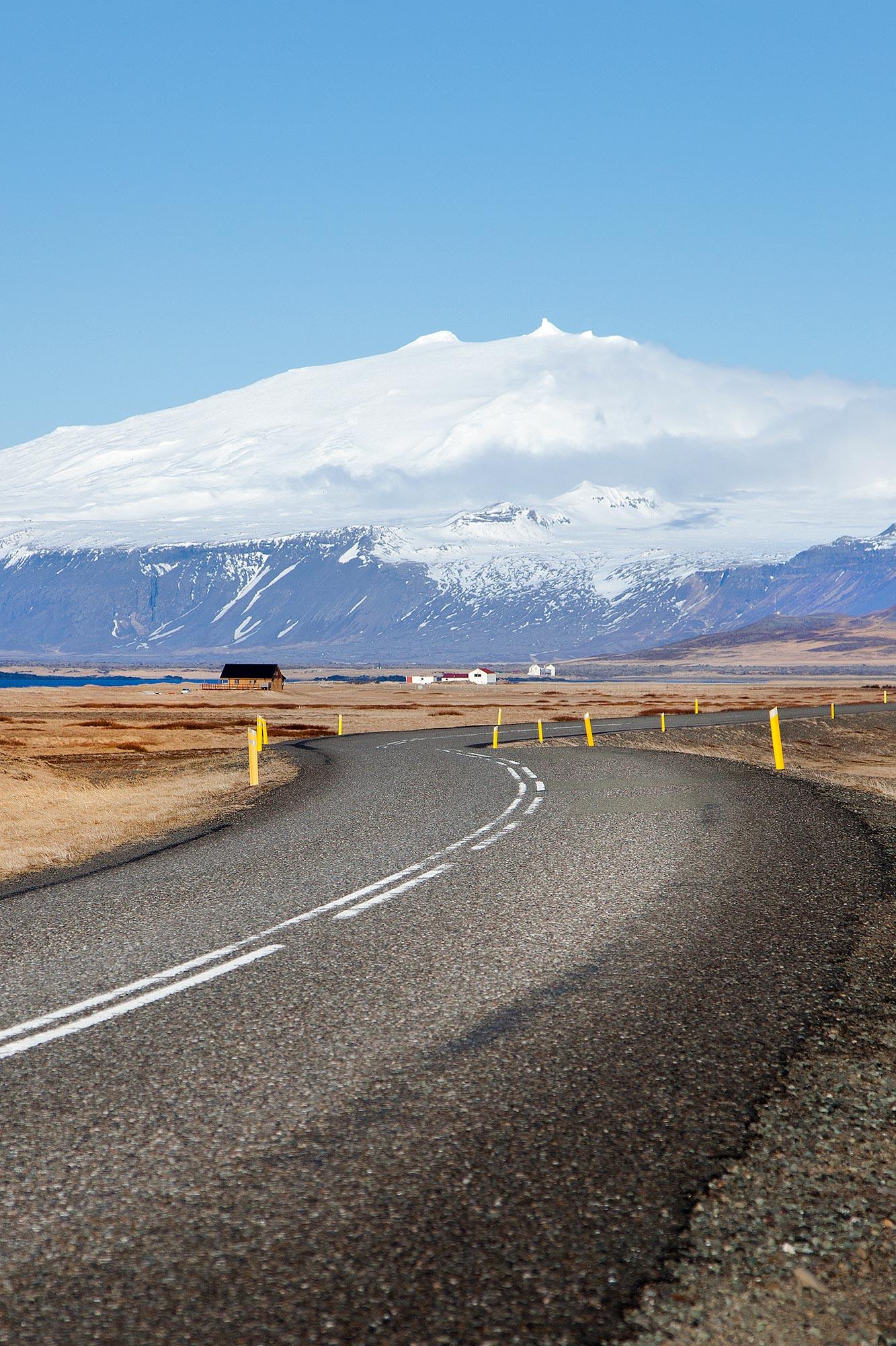 The Snæfellsjökull glacier is one of the most picturesque glaciers in Iceland. It hides a dormant 700,000-year-old stratovolcano that rises 1.446 m above sea level, and last erupted in 250 AD.