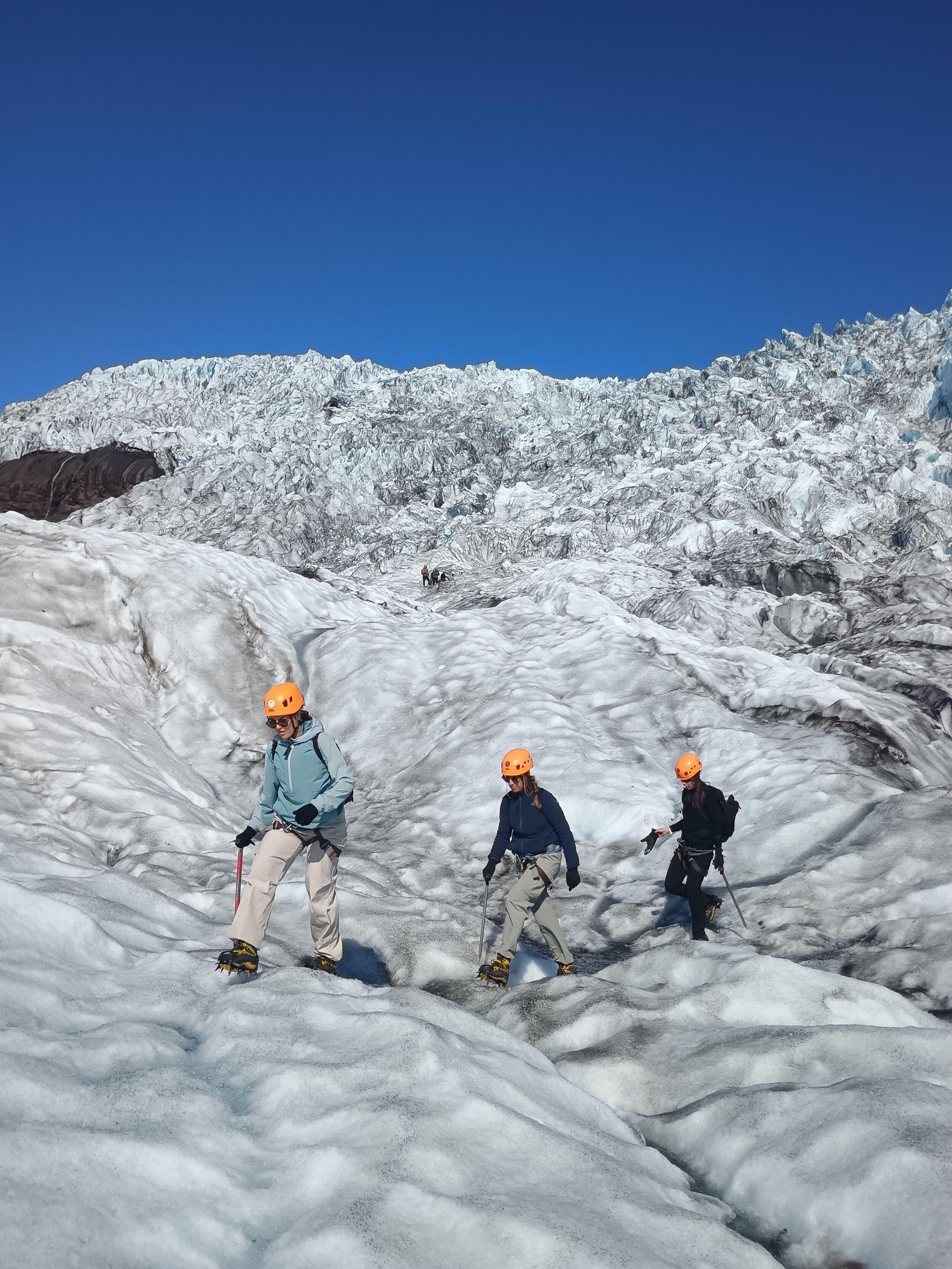 Before stepping on the glacier, you will get all the necessary gear, such as an ice axe, crampons and a harness. Your expert glacier guide will lead you through a wonderland of ice.
